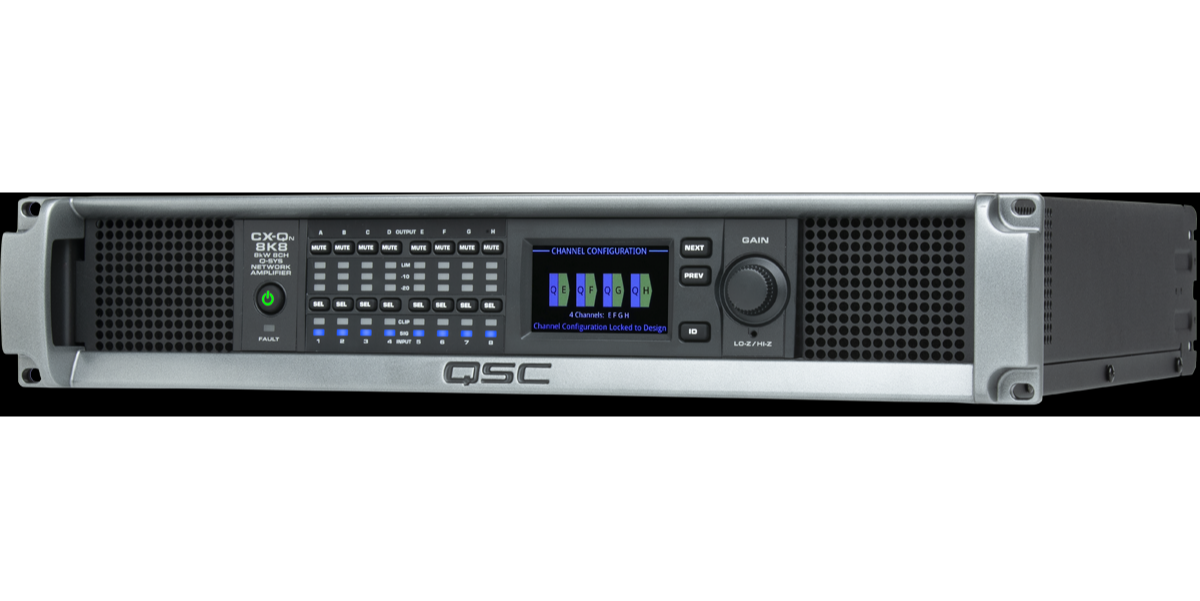 Q-SYS CX-Q Series network amplifiers combine a legacy of robust power amplifiers, advancements in high-efficiency output devices and native network transport, control and monitoring capabilities. CX-Q 4K8 features eight channels, capable of delivering customized power output loading and a total maximum power of up to 4000 W. Low-Z, 70 V or 100 V direct drive are available on all channels.