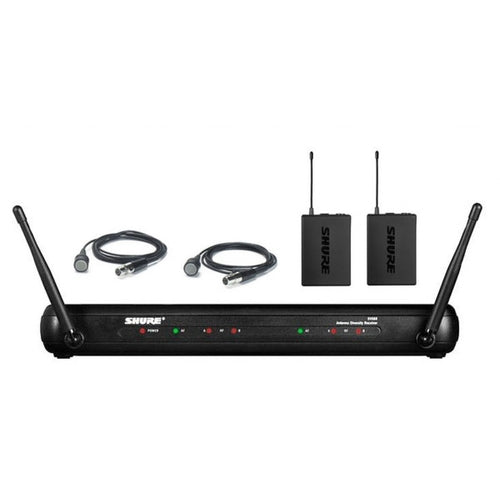 This pack includes the SVX88 Dual Diversity Receiver, and SVX1 Bodypack Transmitter with CVL Centraverse Lavalier Condenser Microphone.